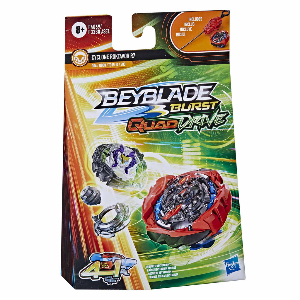 Met Beyblade QuadDrive-technologie heb je de toekomst van Beyblade in handen met de eerste 4-in-1 tol! Elke QuadDrive-tol kan op 4 manieren geconfigureerd worden, zodat je kunt kiezen uit 4 strategieën, 4 manieren om aan te passen, 4 gevechtsstanden en 4 manieren om te winnen! Schat je tegenstander in en pas je QuadDrive-tol aan om het beste uit de strijd te halen. Oefen om de beste van de arena te worden met de meegeleverde rechtsdraaiende Beyblade Burst QuadDrive Cyclone Roktavor R7 G04 QD08 TD15-Q S03-tol en Launcher. Pas de tol aan naar Core- en Apex-modus voor verdedigings-type of naar Core+- en Apex+-modus voor uithoudingsvermogen-type. Maak gebruik van de kracht van geavanceerde QuadDrive-technologie in het QuadDrive Beystadium (Beystadium afzonderlijk verkrijgbaar, zolang de voorraad strekt). Scan de code op QuadDrive-tollen om je tol te lanceren in een virtuele strijd in de Beyblade Burst-app! Lanceer een onderlinge strijd met Beyblade Burst Beystadiums, Launchers en draaiende tollen terwijl je een steeds betere Beymaster wordt! (Elk afzonderlijk verkrijgbaar, zolang de voorraad strekt.) Hasbro en alle gerelateerde termen zijn handelsmerken van Hasbro, Inc.
