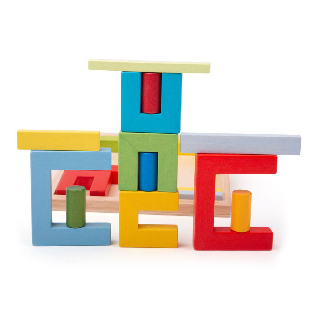 Ontdek de architect in jezelf met deze mooie set houten bouwblokken met deurposten, cilinders en plankjes. Geen regels en grenzen, alles wat je kunt bedenken maak je met deze veelzijdige bouwset. Van robot tot bouwkraa, huis of kasteel! De kleurrijke blokken helpen bij het ontwikkelen van oplossend vermogen en verbeelding. De houten vormen zijn gemaakt van hoogwaardig, verantwoord gewonnen hout en zijn glad en veilig om aan te raken.