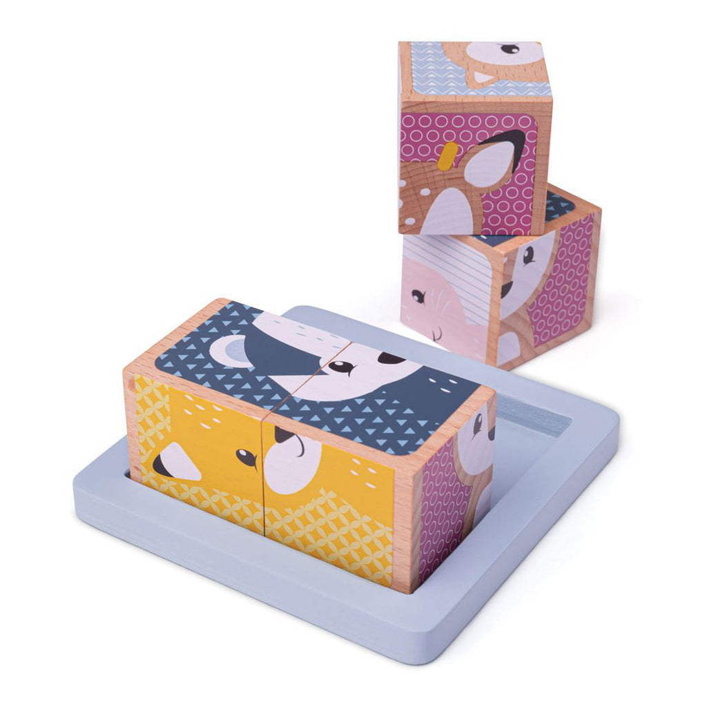 Plaats de zes houten kubuspuzzelstukken bij elkaar om een ??????afbeelding van een bosdier te maken met deze leuke FSC®-gecertificeerde houten kubuspuzzel. Draai elke kubus om om het juiste blok te vinden waaruit de puzzel bestaat, of mix ze voor de lol! Elk stevig houten puzzelstuk is ruim bemeten om het voor kleine handjes gemakkelijker te maken om op te tillen, vast te pakken, te onderzoeken en terug te plaatsen. Onze kubuspuzzel met dieren in het bos helpt kinderen om behendigheid, afstemmingsvaardigheden en concentratie te ontwikkelen. Compacte afmetingen zorgen ervoor dat deze puzzel zowel thuis als op reis een handig speelkameraadje is. Het handige houten dienblad kan worden gebruikt als puzzelbodem (ideaal voor op reis) en maakt het veilig opbergen van alle puzzelstukjes mogelijk.