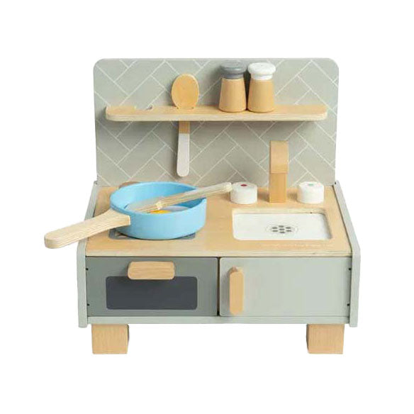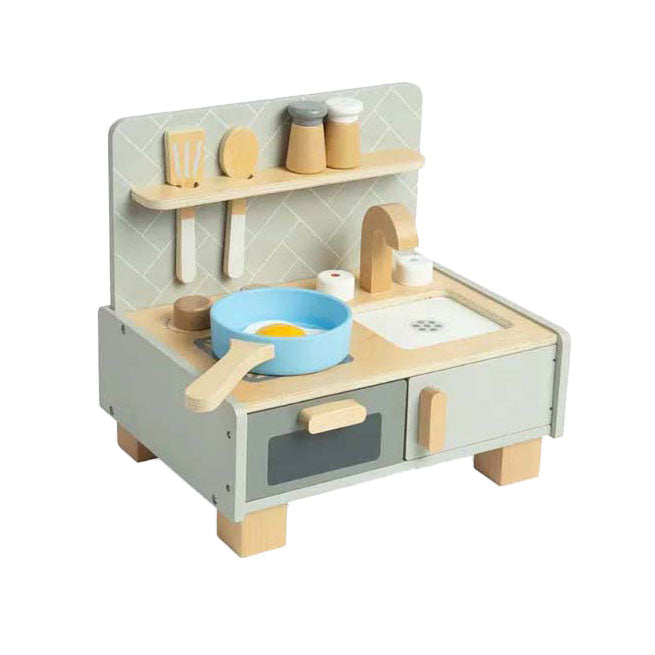 Kleintjes kunnen een heerlijke diner bereiden in hun eigen miniatuur keuken! Deze kleine speelkeuken is gebouwd met een gootsteen, kast, kookplaat en oven voor de culinaire creaties van kinderen. Het wordt ook geleverd met een koekenpan, gebakken ei, kookgerei en zout- en peperstrooiers om fantasierijk spel aan te moedigen!
