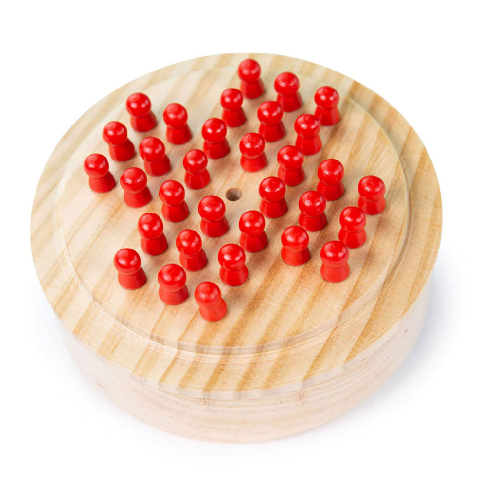 Houten mini Solitaire. Gemaakt van hoogwaardige, verantwoorde materialen. Voldoet aan de huidige Europese veiligheidsnormen. Bestaat uit 32 speelstukken.