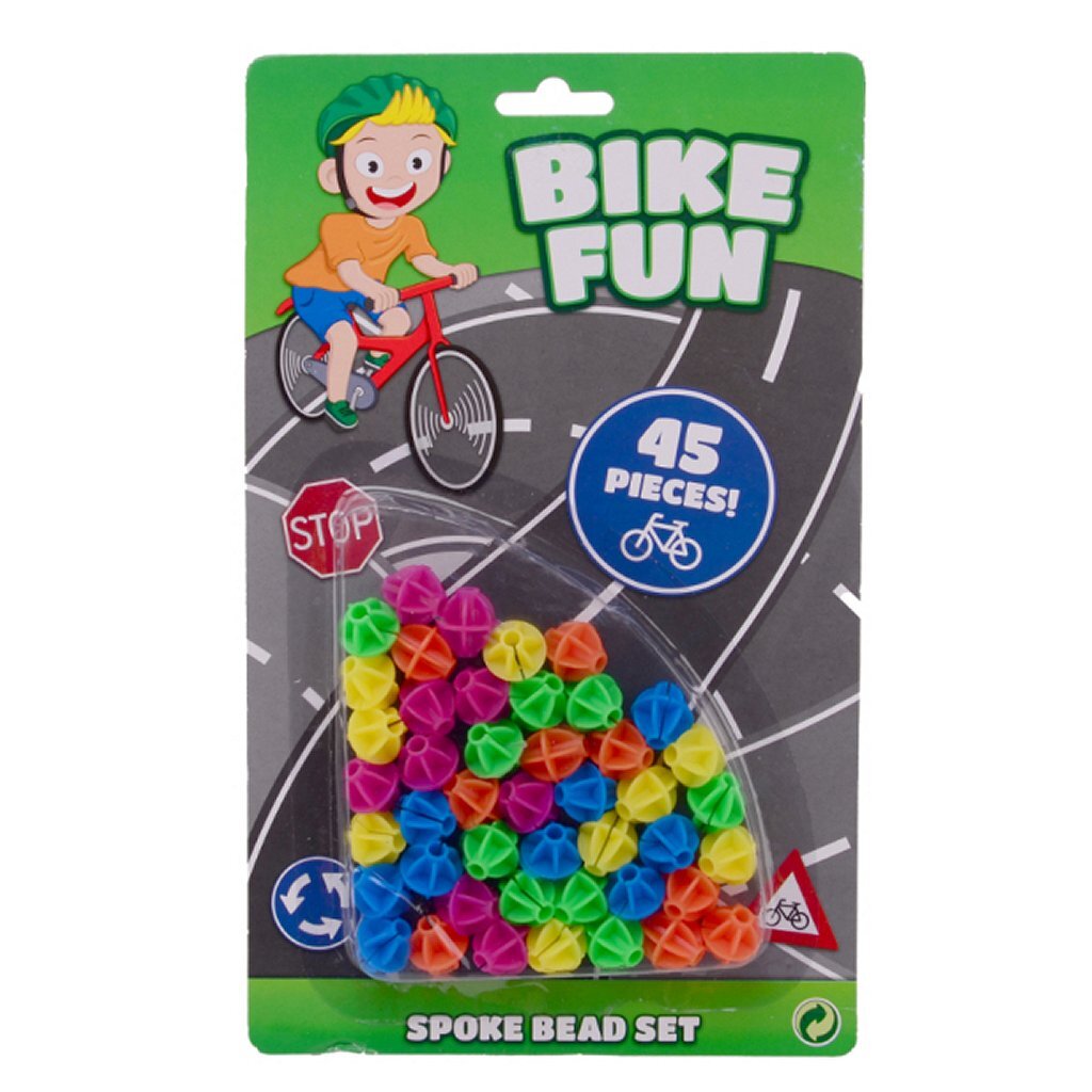 Maak jezelf extra opvallend in het verkeer met deze kleurige spaakkralen! In de set vind je 45 spaakkralen die je gemakkelijk om je spaken klikt.