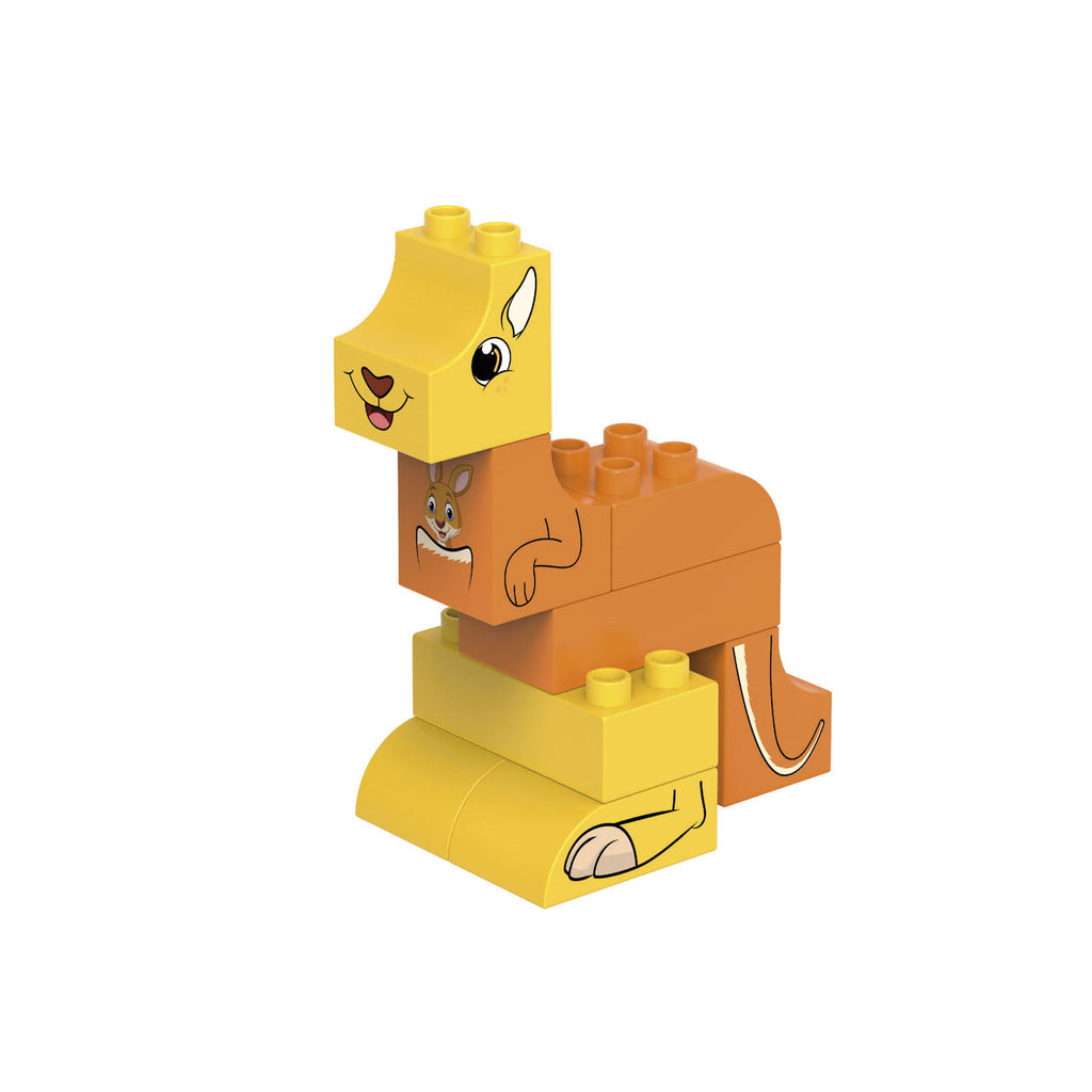Deze geel/oranje kangoeroe van BiOBUDDi bestaat uit 8 bouwblokken. Uit de 100% recyclebare verpakking kun je zes memorykaarten en een achtergrondkaart drukken voor nog meer speelplezier. De bouwblokken van BiOBUDDi zijn gemaakt van de resten van de suikerriet plant, dit maakt het een ecologisch product.