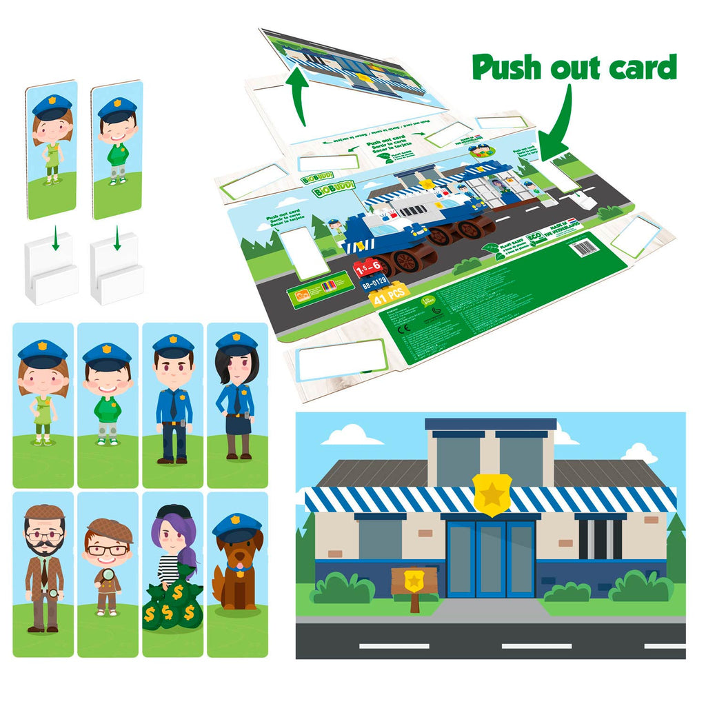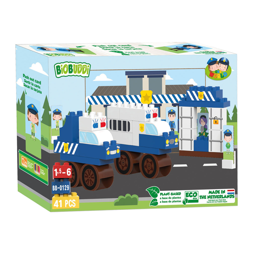 Wou jij altijd al en politie agent zijn? Dat kan nu met het nieuwe BiOBUDDi politie bureau speelset. Stap in de wereld van de politie en stop alle criminelen in jouw stad! “Burgemeester, Burgemeester de politie heeft uw hulp nodig op het kantoor!” Bouw het politie station en ondervraag de meest beruchte criminelen, stap in de politieauto en probeer de misdaad op te lossen. De speelset politie station bestaat uit 41 verschillende onderdelen, gemaakt van resten uit de suikerriet plant. De blokken zijn milieuvriendelijk, recyclebaar, duurzaam en ook uitwisselbaar met andere merken. De verpakking is zo ontworpen dat het onderdeel uit maakt van het product. Het is gemaakt van FSC karton en met een simpele ‘push’ kan je gemakkelijk verschillende kaartjes eruit halen en zetten in de bijgevoegde kaarthouders voor nog meer speel plezier. BiOBUDDi is gemaakt voor kinderen tussen de 1,5 en 6 jaar, Het helpt kinderen met het ontwikkelen van zowel motorische, cognitieve en creatieve vaardigheden tijdens het spelen en bouwen met BiOBUDDi.