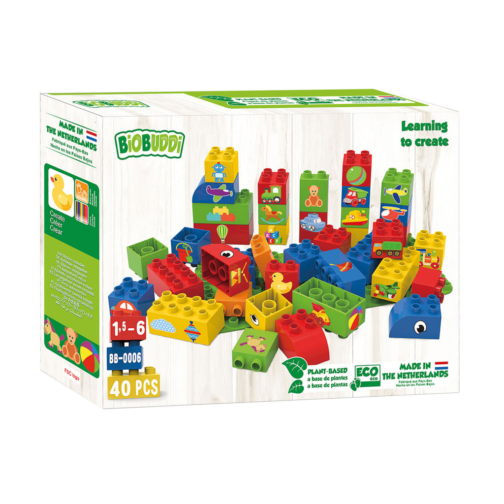 De biologische blokken van BiOBUDDi zijn gemaakt van de niet bruikbare resten van de suikerriet plant. De speelblokken worden in Nederland geproduceerd. De vrolijk gekleurde bouwstenen zijn niet alleen milieuvriendelijk, maar ook recyclebaar en kindvriendelijk. Dit maakt het spelen extra leuk toch? Het speelgoed is uitgebreid getest en voldoet aan alle gestelde voorwaarden.