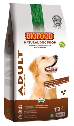 BF Petfood Adult Krokant is een volledige licht verteerbare, natuurlijke en zeer smaakvolle hondenvoeding voor alle rassen. BF Petfood (voorheen Biofood) Adult Krokant bevat gevogelte, rund, wild zwijn en zalm. Met zalmolie, schapenvet, rijst en kruiden. Tarwevrij. Hoge acceptatie en verteerbaarheid.