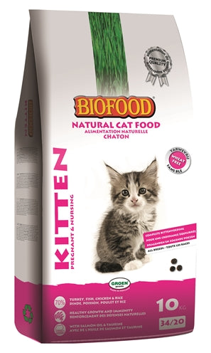 BF Petfood kitten. Nederlandse topkwaliteit. Hoogwaardige, volledige, natuurlijke kattenvoeding die speciaal ontwikkeld is voor kittens tot 12 maanden en drachtige en/of zogende katten. Rijk aan verse en gedroogde kip. Met daarnaast zalm, prebiotica FOS (inuline), zalmolie met omega 3 en 6 vetzuren en taurine. Voorziet in een verhoogde energiebehoefte en is graanvrij. Hoge acceptatie en verteerbaarheid . Ondersteunt groei, ontwikkeling en afweer en zorgt voor een gezond skelet en gebit. Beperkt geur en volume van de ontlasting en bevat geen kunstmatige toevoegingen. Voor jonge katten en zogende en/of zwangere katten.