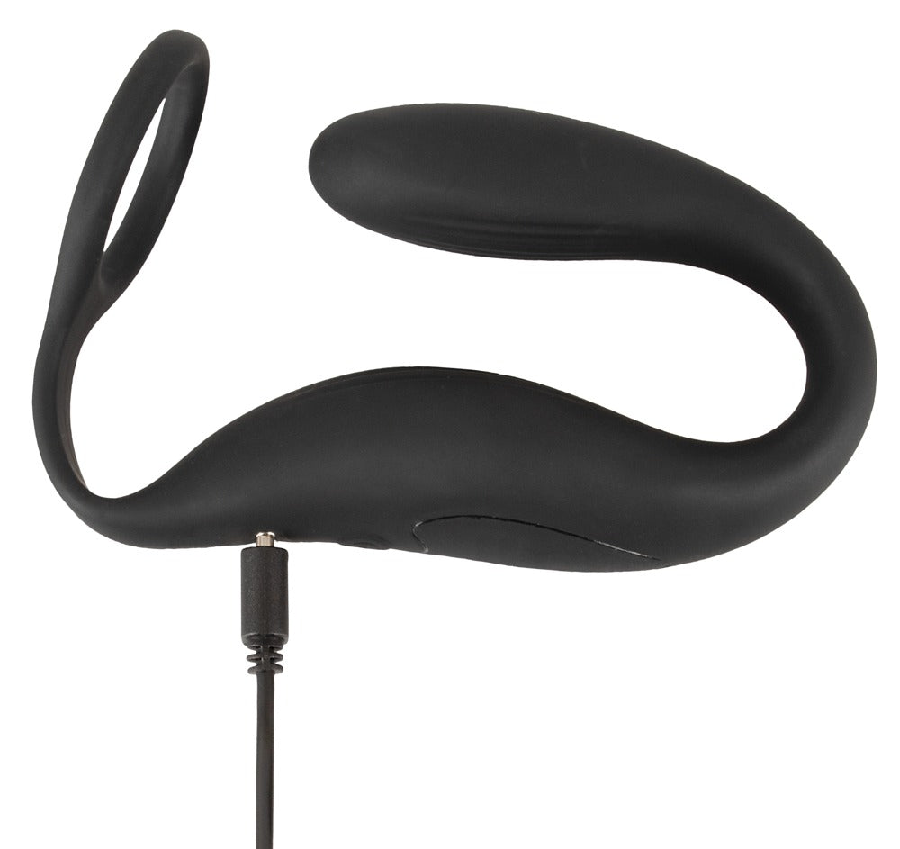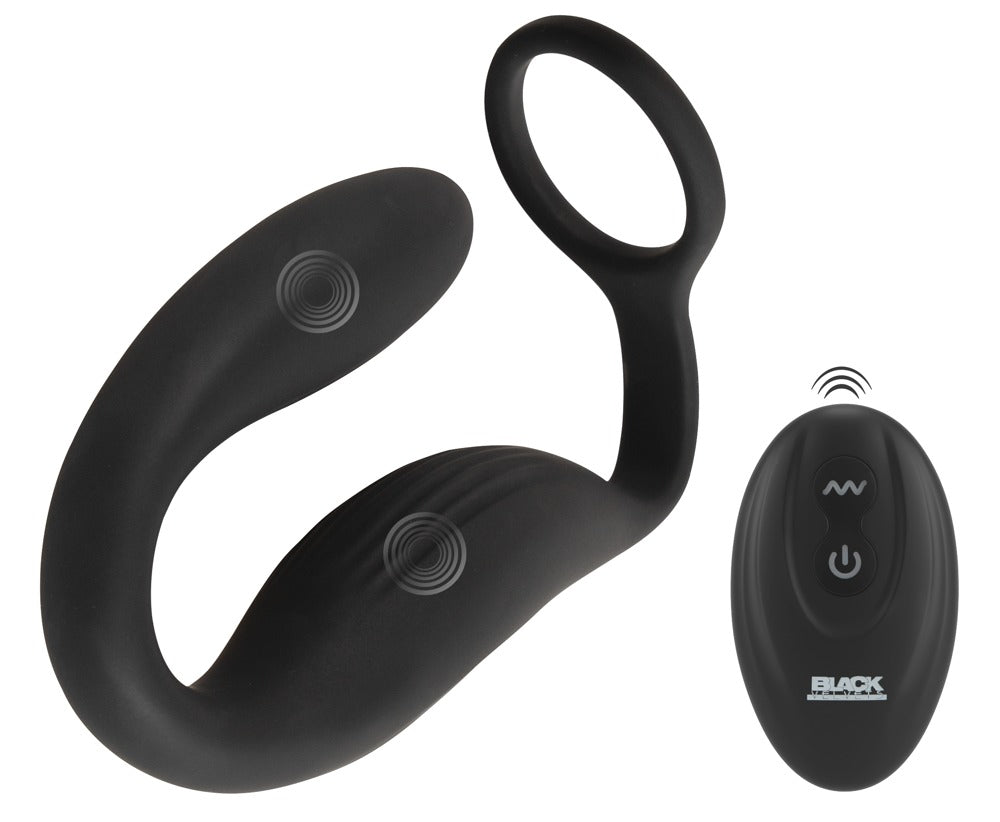 The Cock ring with RC butt plug from Black Velvets combines a prostate & perineum vibrator with a cock ring. The flexible ring clings wonderfully tightly to the penis and can support the erection in an effective way, thanks to the blood congestion effect. The inserted vibro-plug is in a curved shape and provides P-spot stimulation at the same time. The soft perineum vibrator has a stimulating texture and nestles closely into the perineum so that it can stimulate this area at the same time as well. Everything is securely attached to each other so that the plug will stay in the right place and won't slide in too far either. It is made out of silicone with a velvety soft touch texture. The fancy vibro-harness can also adapt to the body and its movements, thanks to its flexibility. For extreme comfort during sex and when it is being worn over a long period of time!