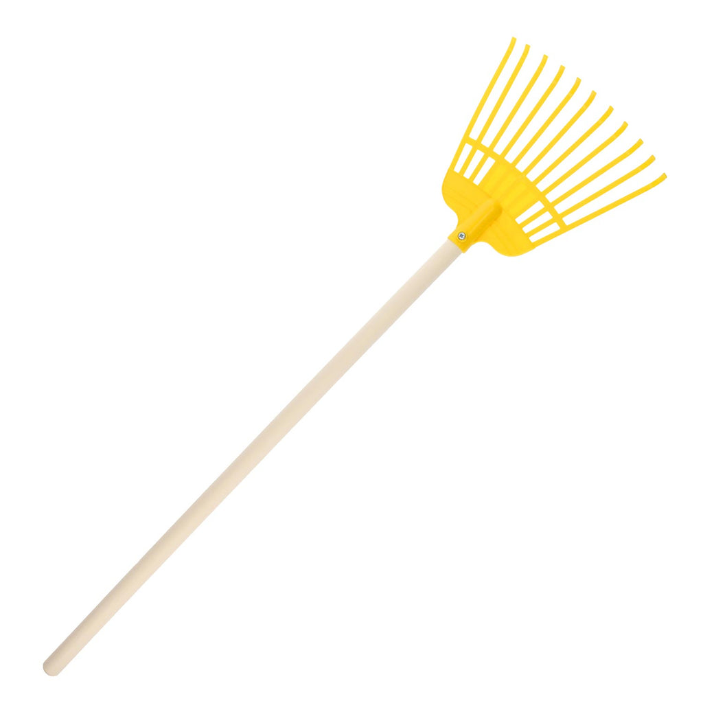 De hark heeft een houten steel en een kunststof hark. De bladhark heeft een lengte van 79 cm.