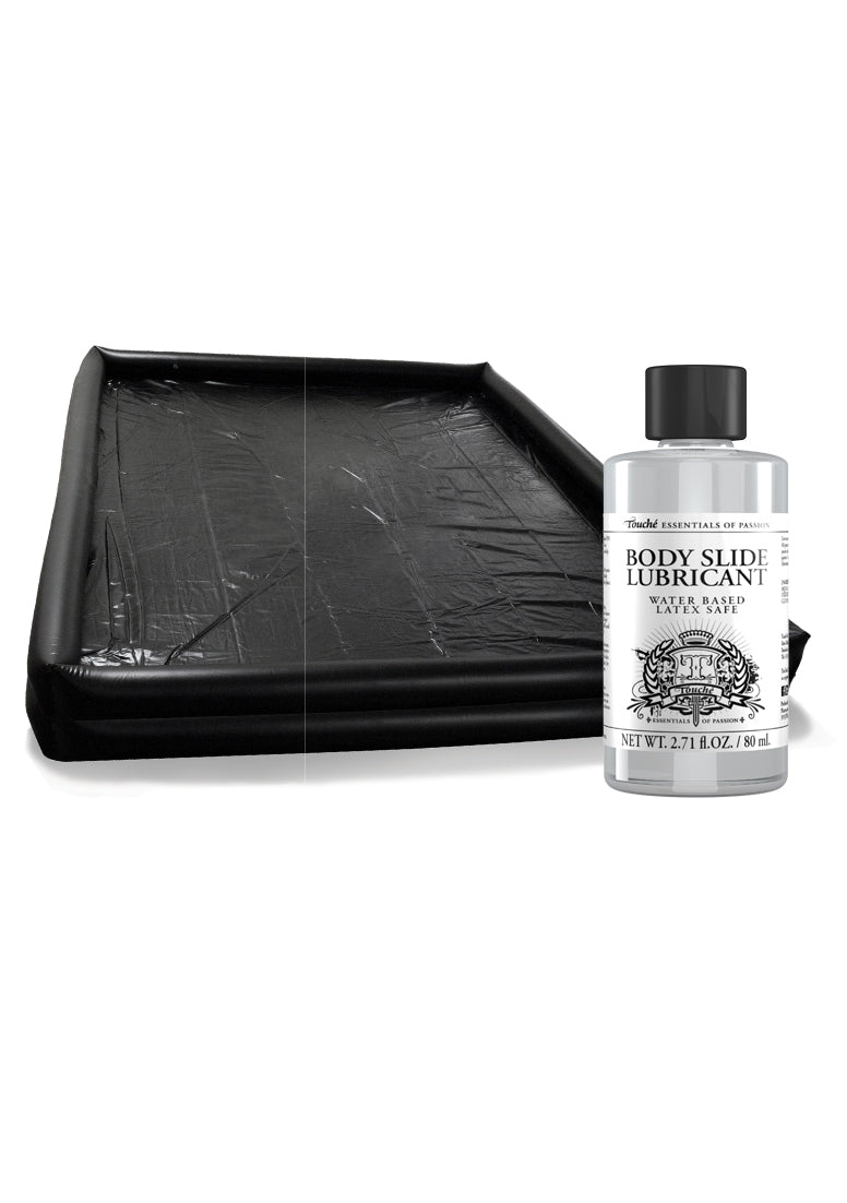 De Body Slide Deluxe is ontworpen voor normale en body-to-body massages. De extra hoge opstaande randen zijn opblaasbaar, zodat je nog meer glijmiddel kan gebruiken zonder dat het een rommeltje wordt. Je kunt het zo vaak gebruiken als je wilt; het is gemaakt van stevig en duurzaam materiaal. Als je klaar bent, was dan de Body Slide Deluxe met wat water en zeep schoon. We hebben al een flesje met geconcentreerd glijmiddel bijgevoegd, wat je met water moet aanlengen. Er is genoeg voor ongeveer 5 liter glijmiddel. Geef je liefdesleven een totaal nieuwe dimensie, door de Body Slide in het spel te brengen!