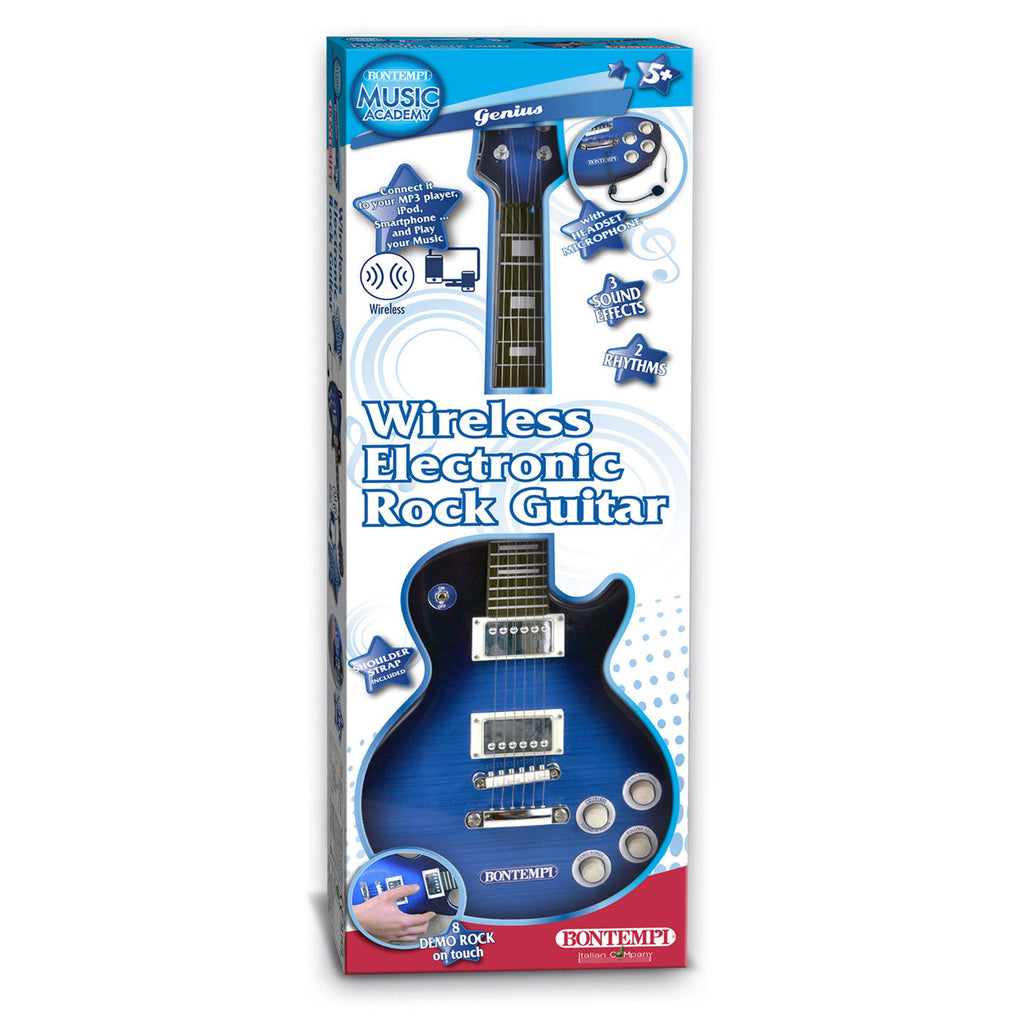 Bontempi draadloze elektrische gitaar gibson met schouderband en headset met microfoon. Batterijen niet inbegrepen (3 R6/AA 1,5V batterijen).