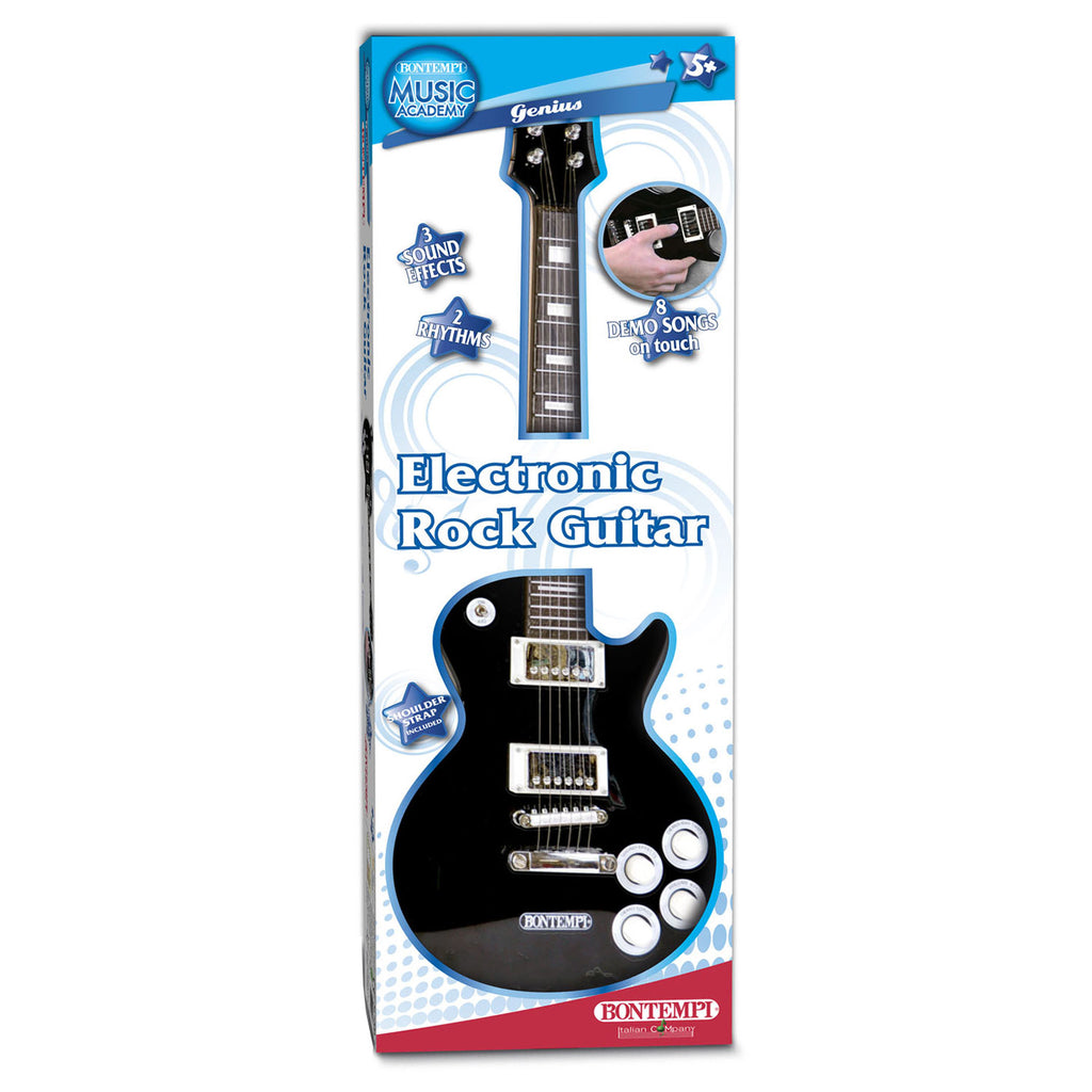 Bontempi Elektrische Rockgitaar in de kleur zwart. Werkt op 3 AA batterijen (niet inbegrepen).