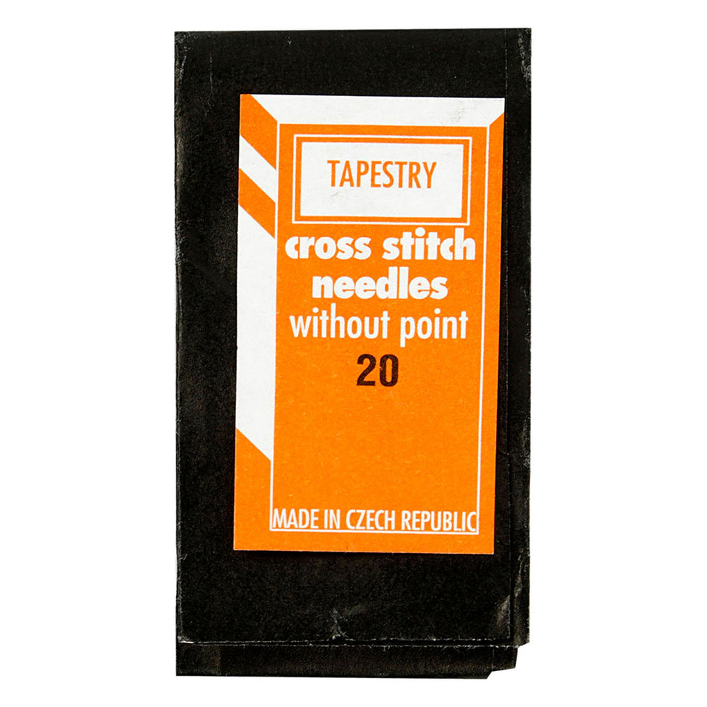 Set van 25 borduurnaalden van metaal met scherpe punt. De lengte van de naald is 4,2 cm, het oogje is 8 mm lang.