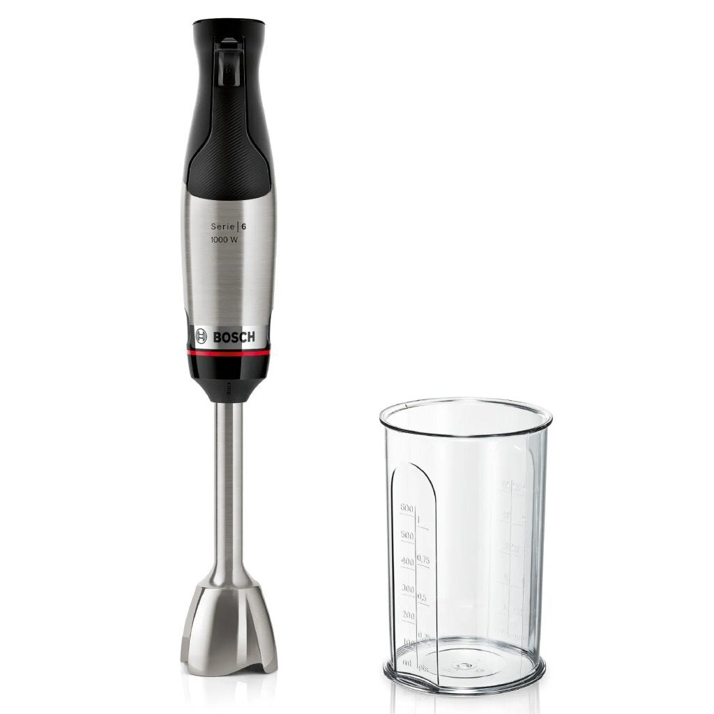 - Zodra je klaar bent met het bereiden van het recept kun je de mixervoet eenvoudig afnemen dankzij het kilksysteem van Bosch. Op deze manier is het reinigen of wisselen van (optionele) accessoires snel gedaan. Bij het bevestigen hoor je deze klik ook, zodat je zeker weet dat de mixervoet goed bevestigd is.
