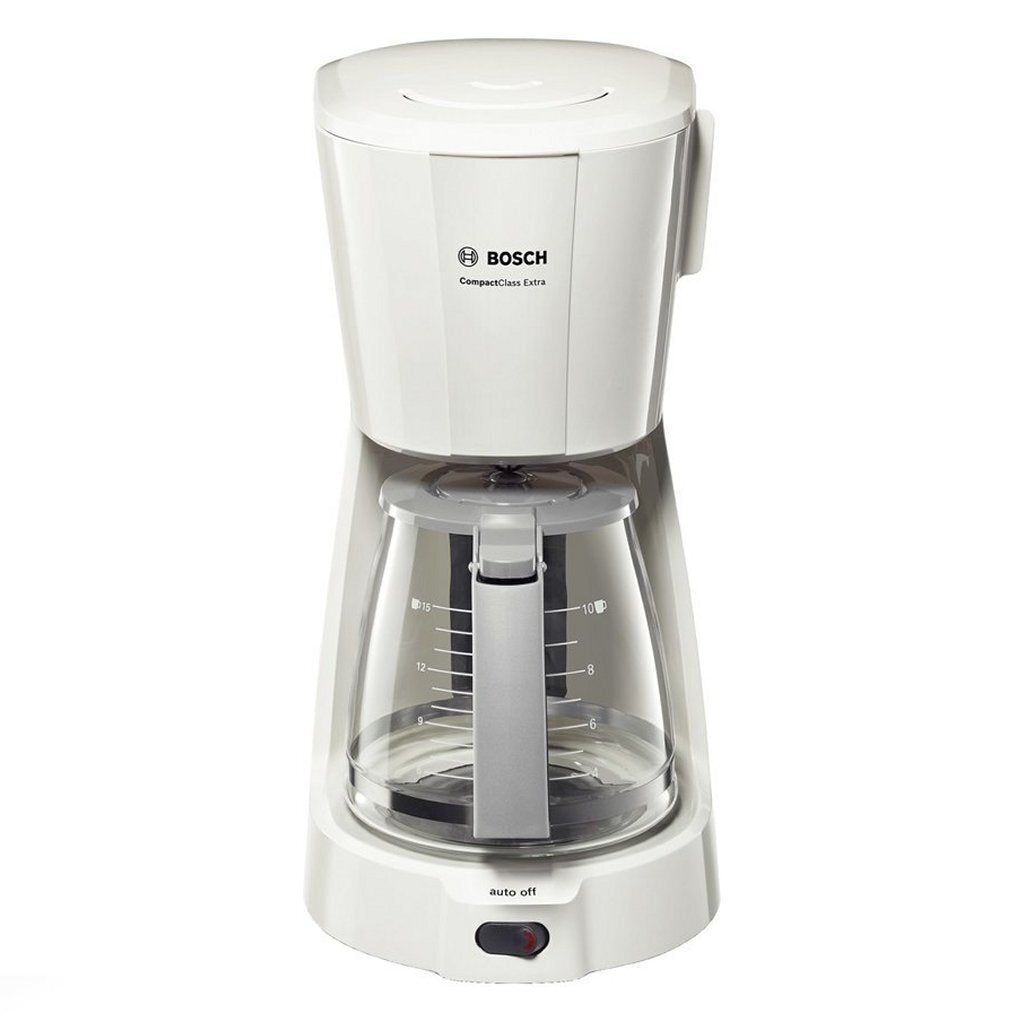 Perfect voor mensen die opzoek naar een koffiemachine die niet te veel ruimte inneemt. De Bosch CompactClass TKA3A031 heeft een mooie glazen kan van 1.25 liter waarmee je 10 tot 15 kopjes per keer kunt zetten.