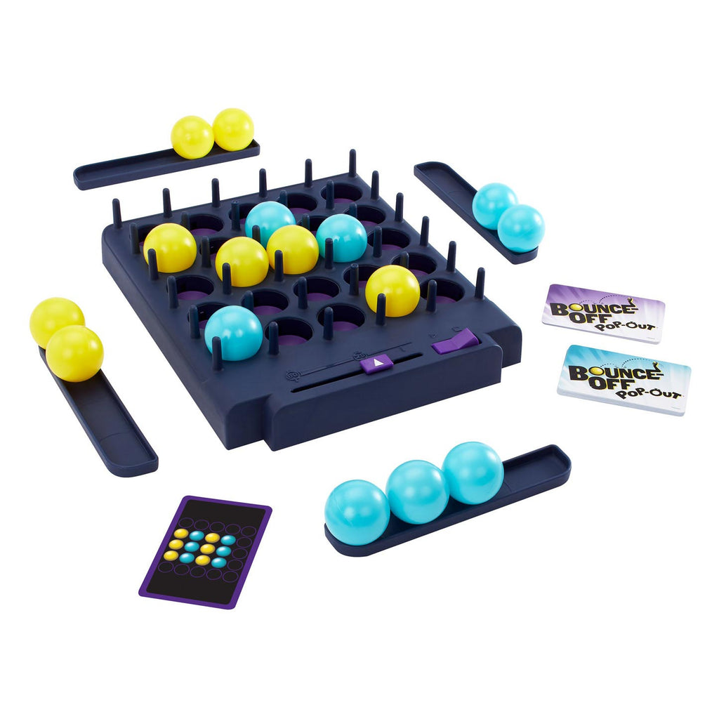 Het originele favoriete stuiterspel krijgt een enorme oppepper met dit Bounce-Off Stuiterspel, waarbij dit keer de spelers tegen de klok moeten spelen! Stel teams samen met vrienden of familie en ga de strijd aan. Of ga met zijn allen samenwerken en laat de ballen stuiteren om de uitdagingen te voltooien. Trek een kaart, stel de timer in, druk op start en GA! Laat de ballen naar het spelraster stuiteren om het patroon van de uitdagingskaart te voltooien. Is het gelukt? Pak de kaart en roep: Victorie! (Of: Ik heb gewonnen!) Tijd tekort? Daar gaan de ballen - volgende stuiterbeurt meer geluk. De ronde mag dan voorbij zijn, de wedstrijd is pas begonnen! Dit actieve gezelschapsspel voor volwassenen en het hele gezin brengt volop stuiterplezier op elke spelletjesavond of gezellige middag samen. Kleuren en versieringen kunnen variëren.