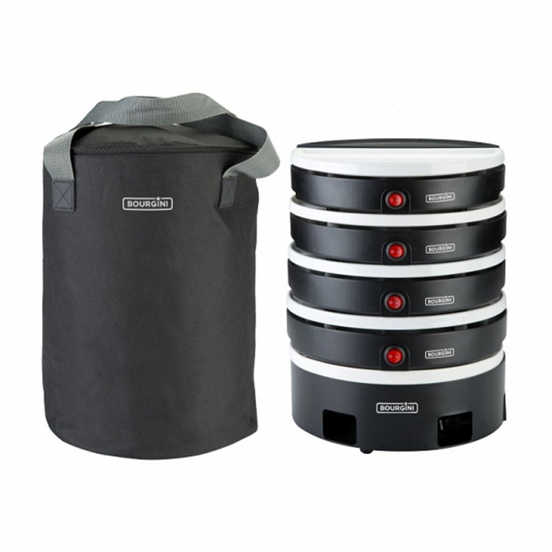 Gezellig met 4 personen samen koken met de BOURGINI Chef?s Dinner Party! Het bestaat uit 4 individueel te gebruiken kook- en eetunits en is zelfs uit te breiden met een extra set naar 5 personen. Ieder kook- en eetunit heeft een eigen keramisch bord en een bakplaatje. De bakplaatjes zijn voorzien van een anti-aanbaklaag, daardoor hoeft er geen olie of boter gebruikt te worden. Door de individuele kookunits vindt er geen smaakvermenging plaats van bijv. vis en vlees, handig bij allergieën en intoleranties. Wat ook erg handig is, is dat je voor al deze units slechts één aansluitsnoer nodig hebt en deze is extra lang: 2 meter. De verbindingssnoeren zijn 55 cm lang.