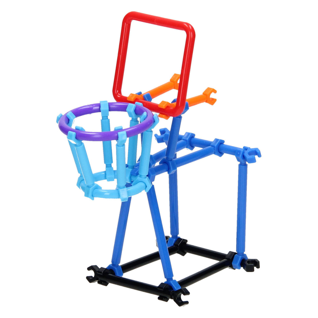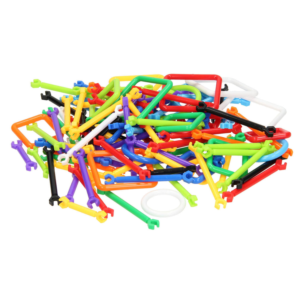 Set van 293 kunststof bouwelementen voor het samenstellen van creatieve bouwwerken. Inclusief handleiding met voorbeeld. Geschikt vanaf 3 jaar.