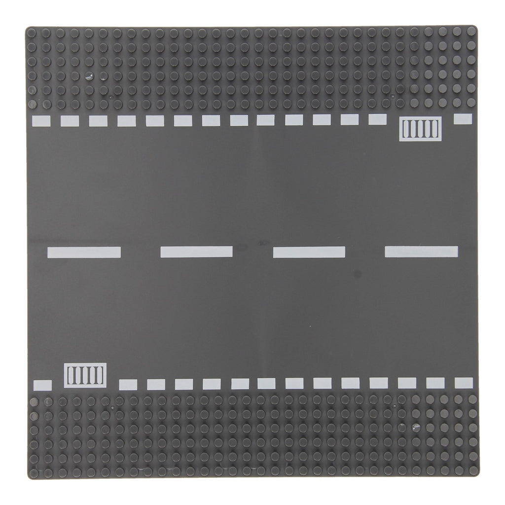 Breid je wegennetwerk uit met deze bouwplaat met bocht. Je kunt op de noppen naast de weg nog mooie bouwwerken bouwen. Bouwplaat is 25 bij 25 centimeter. Gemaakt van kunststof. Geschikt voor de bouwblokken van bekende merken.
