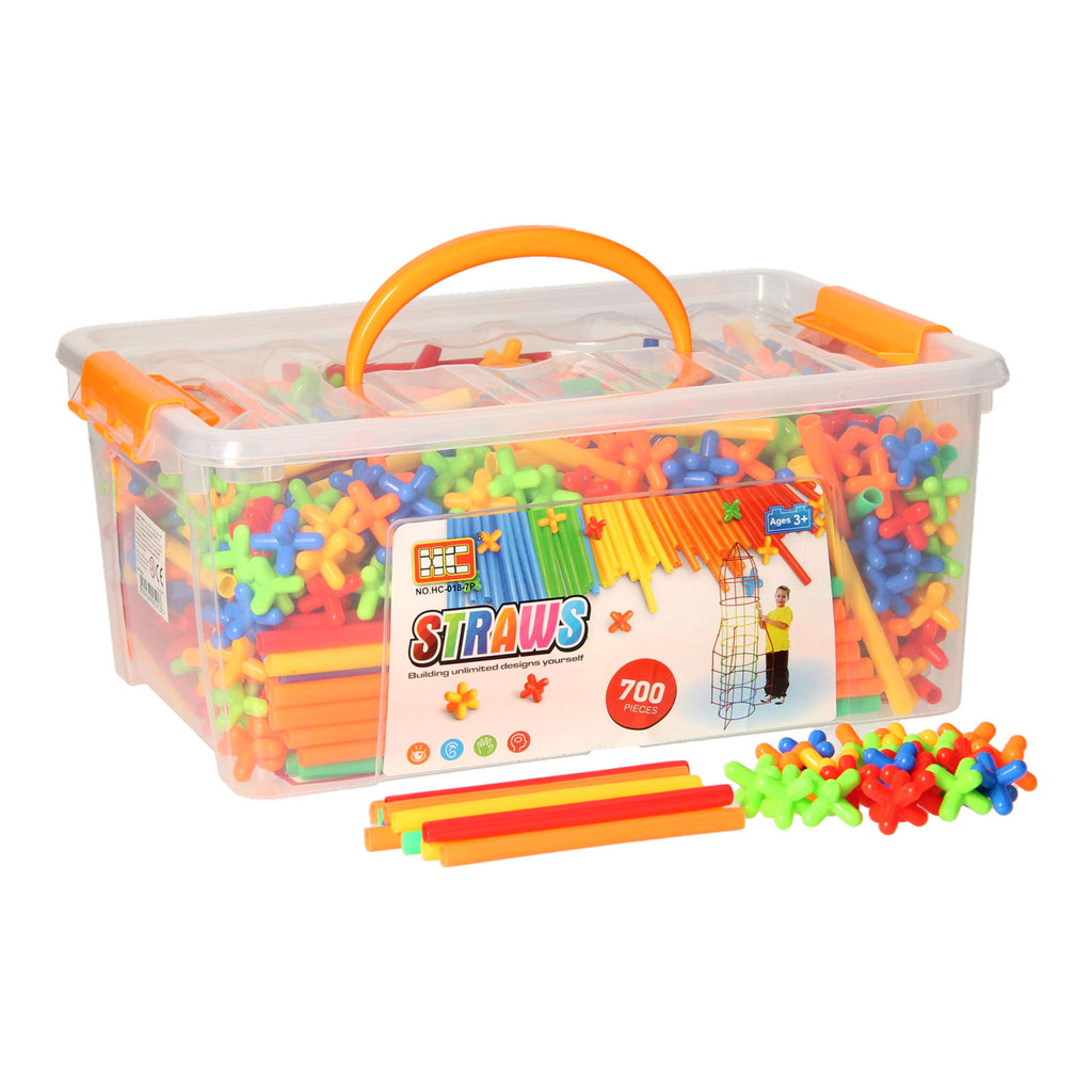 Maak de mooiste bouwwerken met deze set bouwrietjes. Verbind met behulp van de verbindingsstukjes de stevige rietjes aan elkaar en zie de mooiste constructies verschijnen. De set bevat in totaal 700 bouwstaafjes en verbindingsstukjes in vrolijke kleuren. Na het spelen berg je de verschillende onderdelen gemakkelijk weer op in de handige opbergbox. Inhoud: 350 staafjes en 350 verbindingsstukken. Lengte grote bouwstaven 19 centimeter en lengte kleine bouwstaven 9 centimeter.