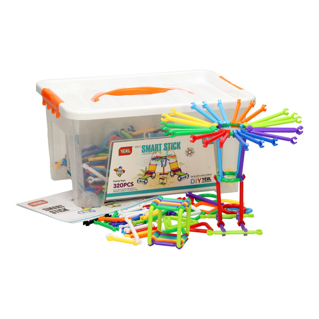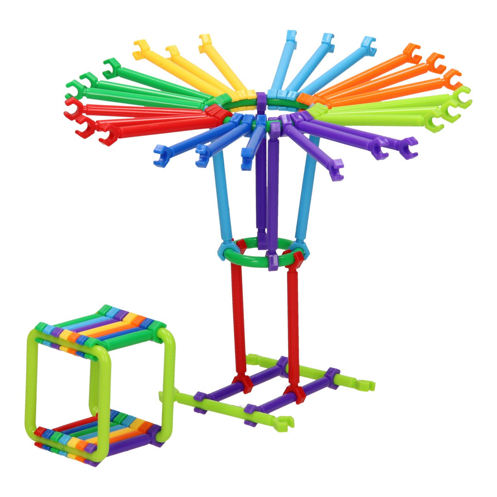 Met de Bouwstaafjes kun je eindeloos figuren bouwen. Een reuzenrad, een auto of een molen, steek de 320 stevige kunststoffen kleurrijke bouwstaafjes in elkaar en bouwen maar. Stimuleer de hand-oog coördinatie en leer verschillende kleuren en vormen met deze bouwset. Wanneer je klaar bent met bouwen kun je de bouwstaafjes opbergen in de handige bijgeleverde Opbergbox op wielen met handvat. Geschikt vanaf 3 jaar.