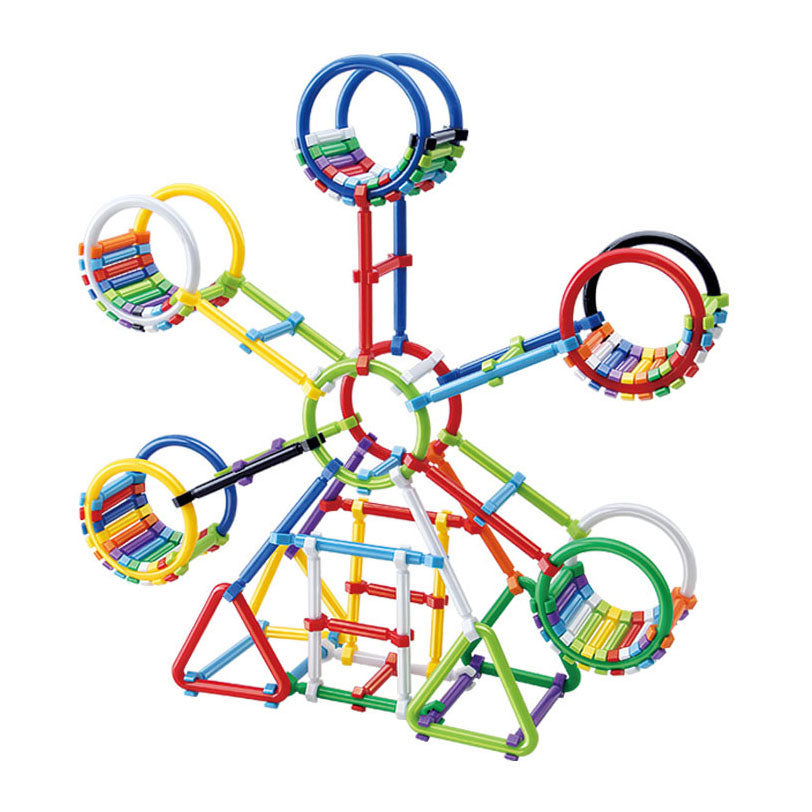 138 stuks bouwstaafjes en bouwvormen in zak om creaties mee te bouwen. Gemaakt van kunststof. Geschikt voor kinderen vanaf 3 jaar oud.