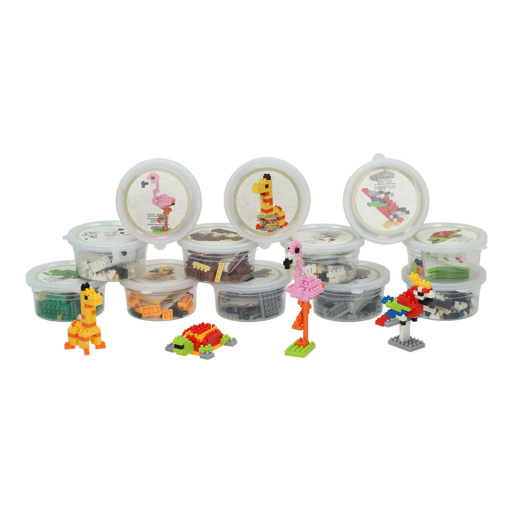 Bouwstenen mini dier in potje.