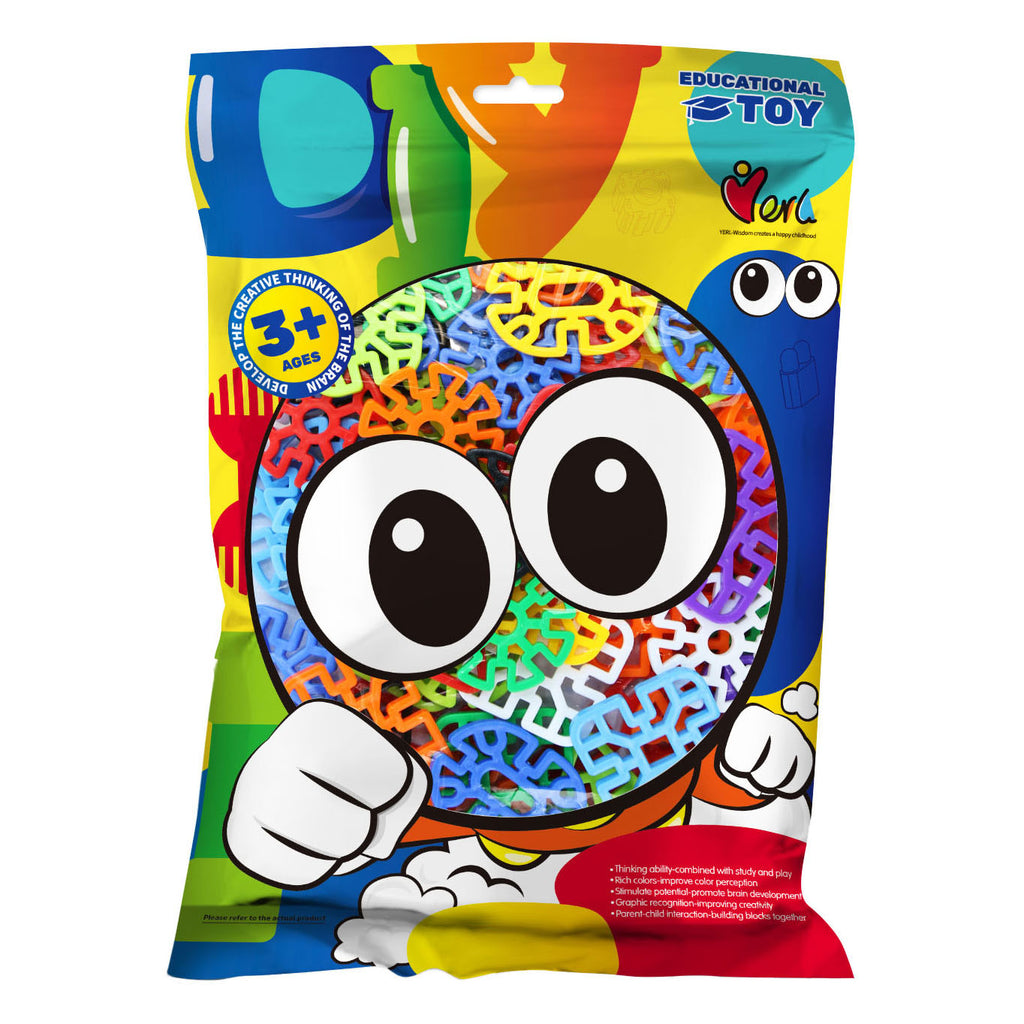 38 stuks bouwvormen in zak om creaties mee te bouwen. Gemaakt van kunststof. Geschikt voor kinderen vanaf 3 jaar oud.