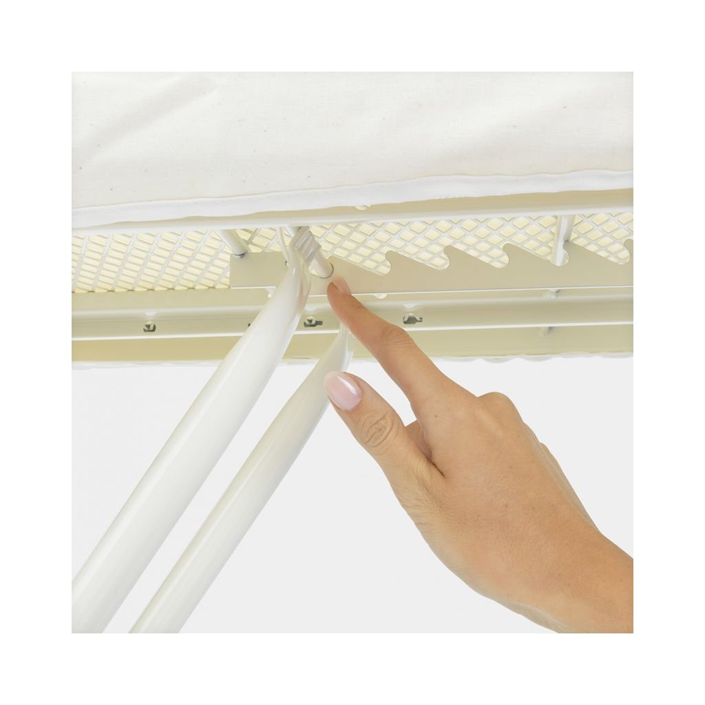 Welk strijkijzer je ook gebruikt, je kunt het zeker kwijt op deze extra stevige Brabantia stoomstrijkplank B met metalen stoomgeneratorhouder! En er zijn nog meer redenen waarom dit een geweldige strijkplank is. Bekijk ze allemaal!