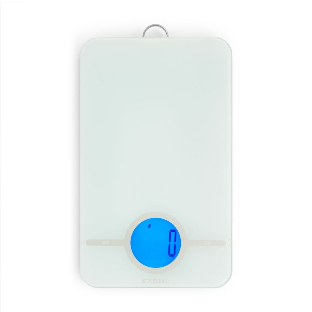 Vrolijk je keuken op met deze digitale Brabantia Tasty+ Keukenweegschaal op batterijen. Dit handige keukenhulpje heeft een verlicht LCD display en weegt alles, van 1 gram tot 5 kilo. Uitgewogen? Veeg het glazen oppervlak af en hang je weegschaal binnen handbereik aan zijn lus. Wat wil je nog meer van een weegschaal?