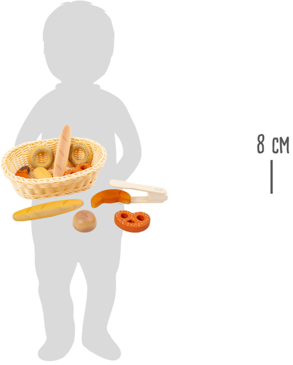 Ontbijt is klaar! Deze twaalfdelige set met gebak, een gevlochten mand en een bakkerstang zal indruk maken op jonge fijnproevers met zijn twee croissants, twee bagels, een tarwebroodje en een roggebroodje, twee baguettes en twee pretzels, en het is de perfecte aanvulling voor actief rollenspel in de speelkeuken van de kinderen! Zelfs de speelwinkel wordt in een mum van tijd omgetoverd tot een bakkerij waarin elke klant zijn favoriete lekkernij vindt. Als ideale aanvulling op speelwinkels en speelkeukens bevordert deze bakkerijset de actieve imitatie van alledaagse situaties en inspireert het tot creativiteit. Met de tang kunnen kinderen grijpen oefenen en hun motoriek trainen. De aard en de realistische uitstraling van de bakproducten maken een bijzonder authentieke speelervaring mogelijk.