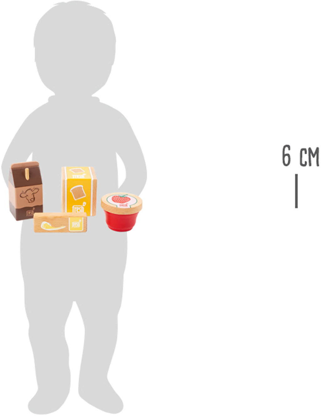 De tafel is gedekt! Deze vierdelige ontbijtset van hout biedt alles voor een smakelijk begin van de dag. Naast toast, jam en boter is er ook cacao! Alle producten zijn gemaakt van robuust hout en bedrukt met aantrekkelijke en gemakkelijk te begrijpen motieven. Zo kunnen jonge kinderen een actief rollenspel oefenen door de ontbijttafel te dekken! Dankzij het natuurlijke design met een hoog aandeel aan houtmateriaal hebben deze producten een hoogwaardige uitstraling die ook na lange speelsessies behouden blijft. Het is de ideale accessoire voor kinderspeelzaken of speelkeukens! Zo kunnen kinderen de dag goed beginnen met een lekker ontbijt.