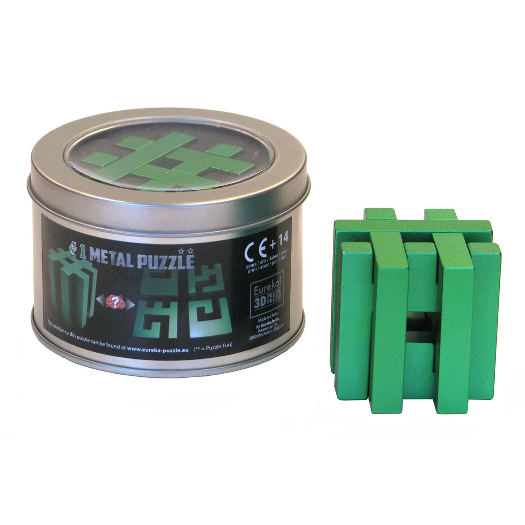 De puzzels van Eureka geven uitdagende problemen die je moet oplossen via logica en geduld. Kraak je brein om de puzzel in en uit elkaar te halen. Verpakt in handig metalen blik. Geschikt vanaf 6 jaar. Afmetingen blik: 9 x 6 cm (D x H).