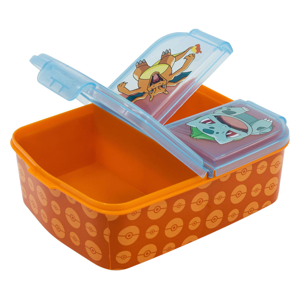 Pokémon broodtrommel met drie compartimenten, elk uitzonderijk af te sluiten. Afmetingen: 18,5 x 5,5 x 13,5 centimeter. Geschikt vanaf 3 jaar.