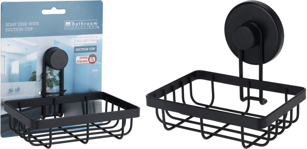 BS Badkamer zeepbakje met zuignap 134x115x115mm - zwart