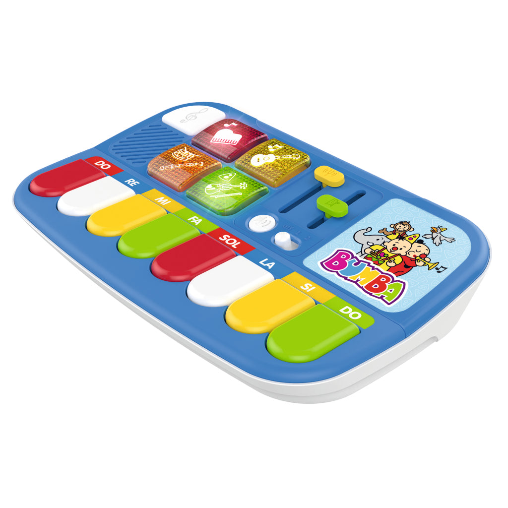 Met deze piano kan je vier instrumenten kiezen; Piano, Gitaar, Fluit en Viool. Druk op het instrument wat je wilt spelen en het Bumba feestje kan beginnen! Je kan het volume, toonhoogte en snelheid van je liedje instellen. Super leuk en leerzaam speelgoed voor de allerkleinsten