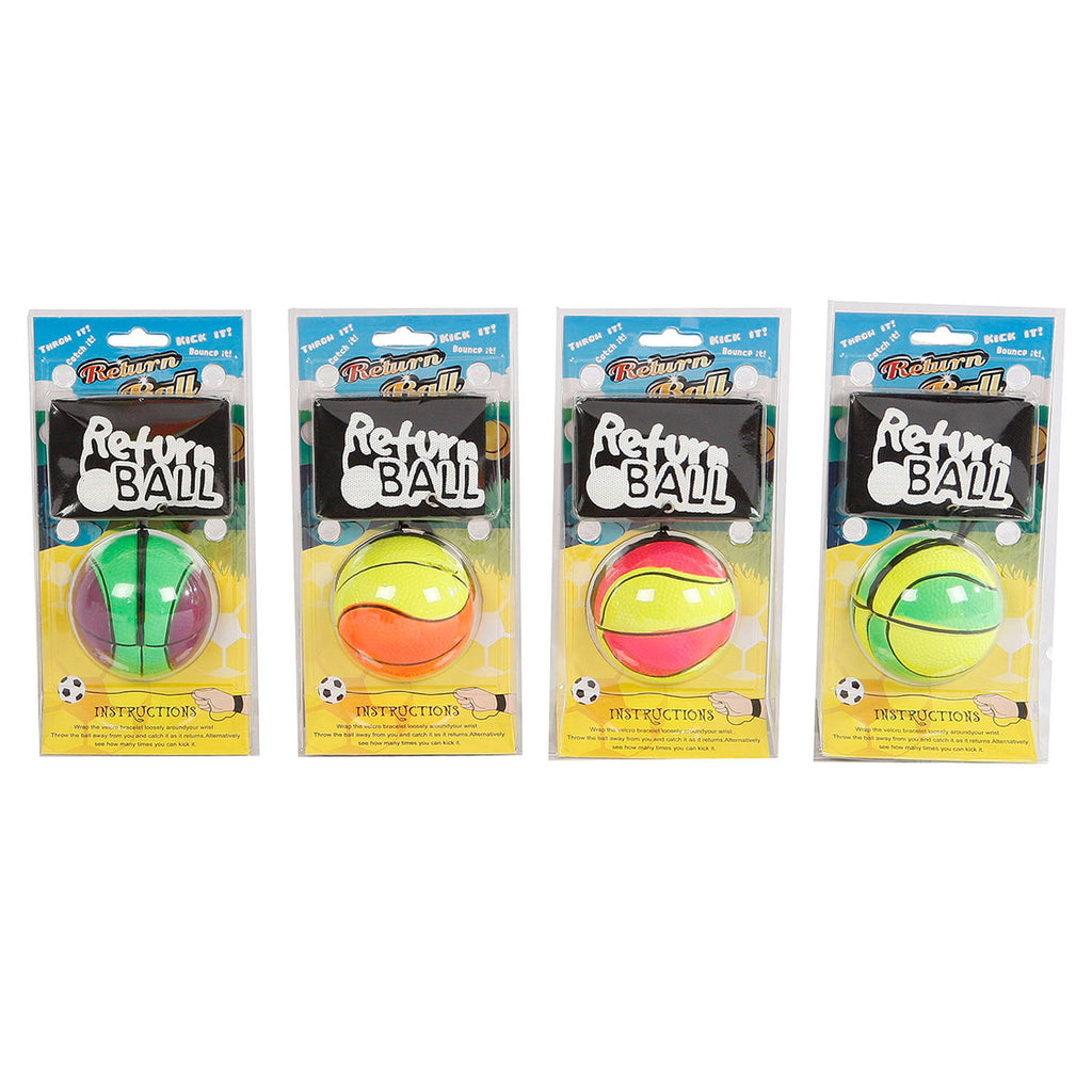 Maak het bandje met klittenband vast aan je pols en het spel kan beginnen. Gooi het balletje weg en probeer hem te vangen als hij weer terugkomt. Hoe vaak kan jij het balletje vangen?