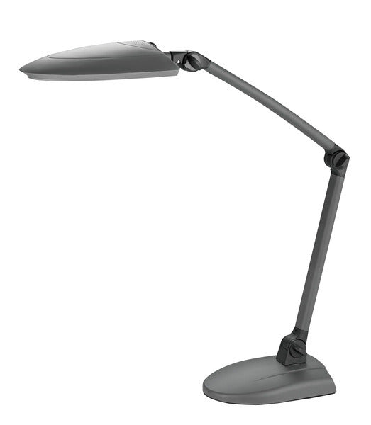 Moderne bureaulamp nu met LED-technologie. De lamp biedt schittering-vrij licht. De lamp wordt geleverd met voet en tafelklem voor gebruik naar wens. Door de dubbele arm en een veelzijdige verstelbare reflector is deze lamp individueel instelbaar. Kleur zwart / antraciet. 10 watt, 230 volt. De gemiddelde levensduur is 16.000 uur. Energie efficiencyklasse A. Lichtstroom 1030 lm. Kleurtemperatuur 276 lux - 100 cm.