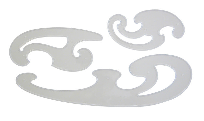 Burmester sjablonen, 3-delige set van verschillende maten. 1mm dik, in plastic etui