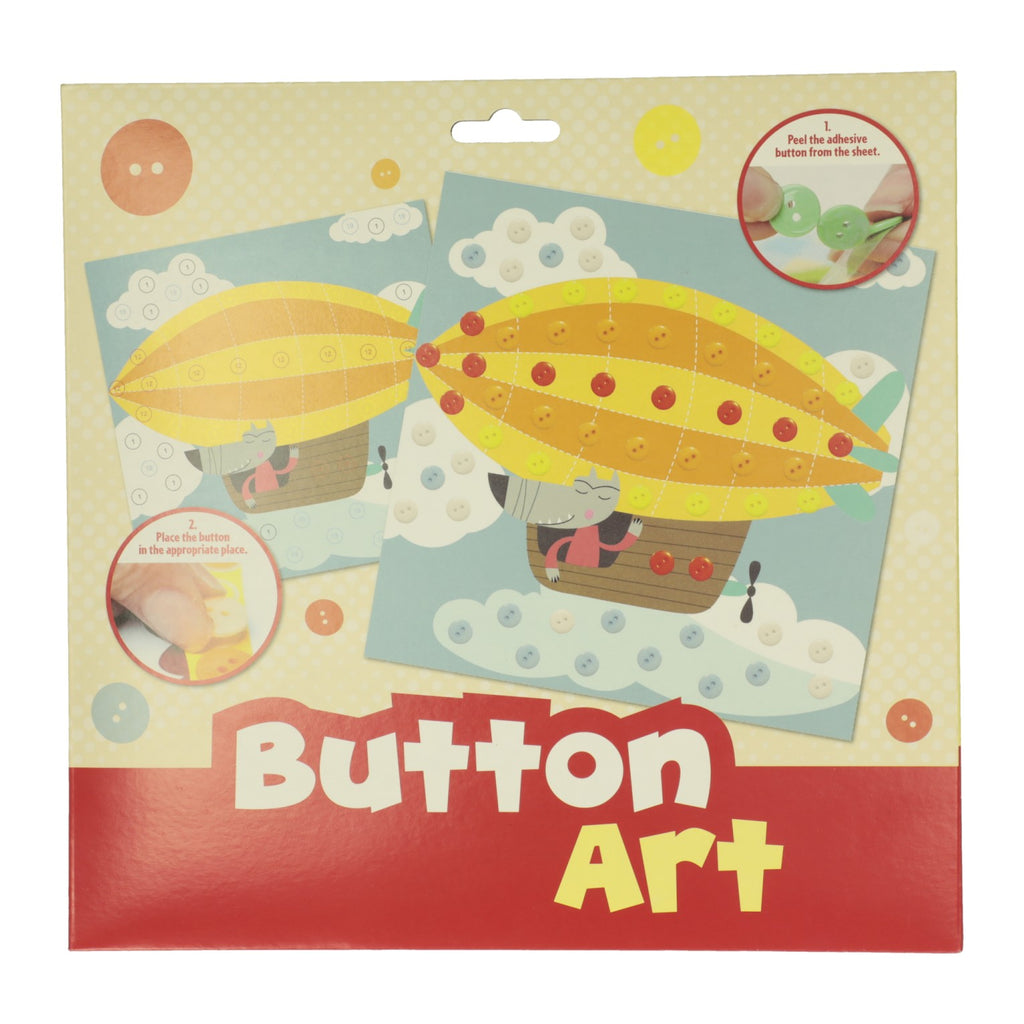 Knutselset waarbij een schilderijtje versiert kan worden met gekleurde knoopjes. In de set zit een kartonnen afbeelding (20 x 20 cm), stickervel met verschillende knoopjes en een kartonnen standaard. De knutselset is geschikt voor kinderen vanaf 3 jaar.