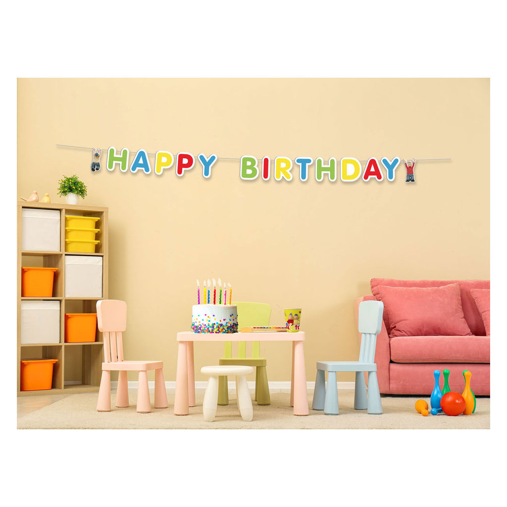 Letterslinger 'Happy Birthday' Buurman & Buurman - 1,5 meter. Inhoud: 1 letterslinger. Kleur: Meerkleurig. Bijvoorbeeld te gebruiken tijdens de volgende feestgelegenheid/feestgelegenheden: Kinderfeestje. Deze slinger is ongeveer 1,5 meter lang en is eenzijdig bedrukt. De letters zijn ongeveer 14 cm groot. Het artikel is gemaakt van papier.