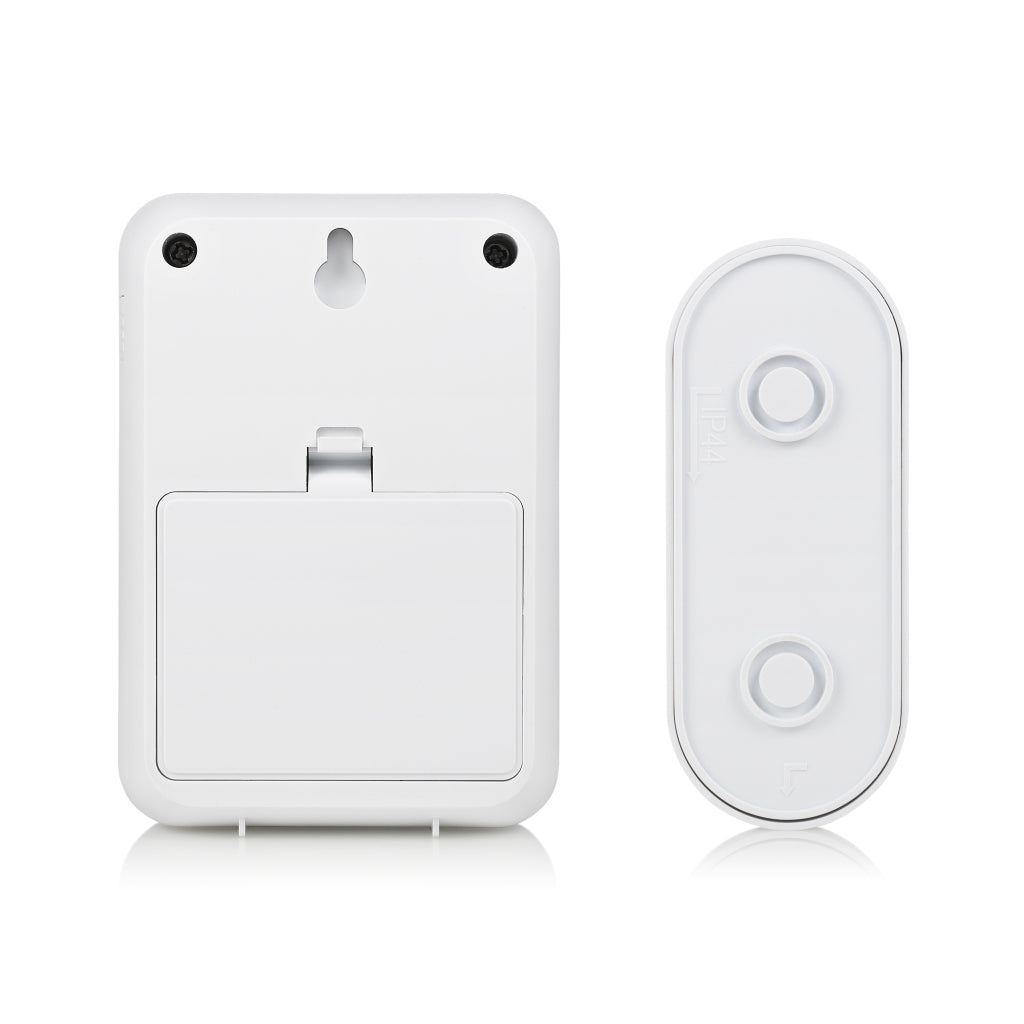 De beldrukker werkt op de meegeleverde CR2032 batterij en kan makkelijk geïnstalleerd worden bij elke deur. De deurbel werkt op 3x AA batterijen (niet inbegrepen) en kan dankzij het bereik tot 150 meter overal in huis mee naar toe genomen worden. Aan het werk in de tuin of op zolder en hoor je daar de deurbel niet? Dat is geen probleem, met deze deurbelset mis je geen enkele bezoeker.16 melodieën en 5 geluidsniveaus