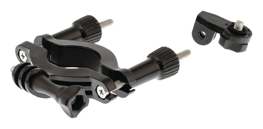 Monteer de bevestigingsset aan het handvat van uw motorfiets en maak uw actiecamera daaraan vast om al ritten vast te leggen.