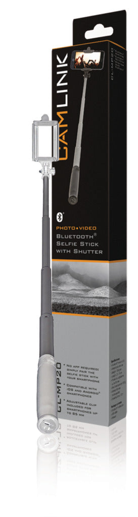 Bluetooth selfiestick om haarscherpe, stabiele zelfportretfoto?s te maken met familie of vrienden: bevestig eenvoudig een smartphone in de meegeleverde houder, verstel de stok tot de juiste lengte en druk op de ingebouwde sluiter.