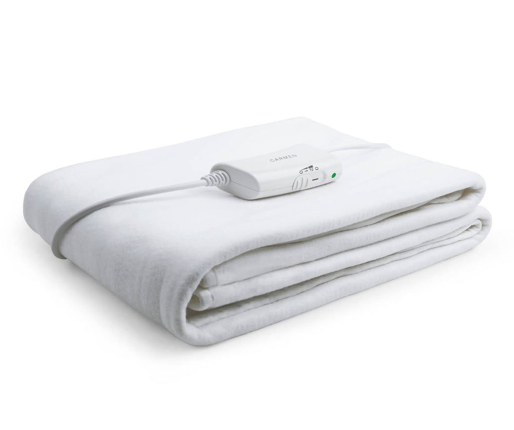 Lig er warmpjes bij met deze elektrische 1-persoons onderdeken CEB1501W van Carmen. De deken is in bed te gebruiken en geeft een aangename warmte af, zodat je tijdens de koudere dagen heerlijk in slaap valt. De schakelaar is voorzien van 2 warmtestanden, waardoor je zelf jouw perfecte stand kunt kiezen. De 5 lagen stof zorgen voor optimaal gebruikerscomfort en het snoer met extra dunne aansluiting is eenvoudig te verwijderen, zodat je de deken ook in de wasmachine kunt wassen.