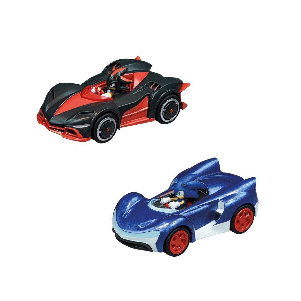 De Carrera GO!!! Met de set "Sonic the Hedgehog 4.9" kun je voor het eerst over het 4,9 meter lange circuit racen met de legendarische blauwe videogame-egel. Uitgerust met zijn supersnelle "Speed Star", neemt de iconische SEGA-held Sonic het op tegen zijn stekelige concurrent Shadow in zijn "Dark Reaper" speedster.