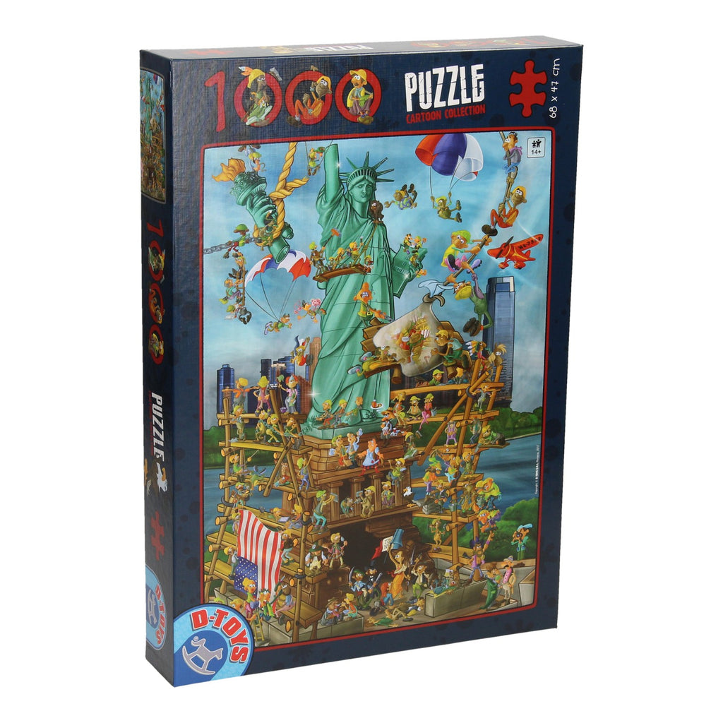 Vrijheidsbeeld cartoon puzzel van 1000 stukjes, 68 bij 47 cm.
