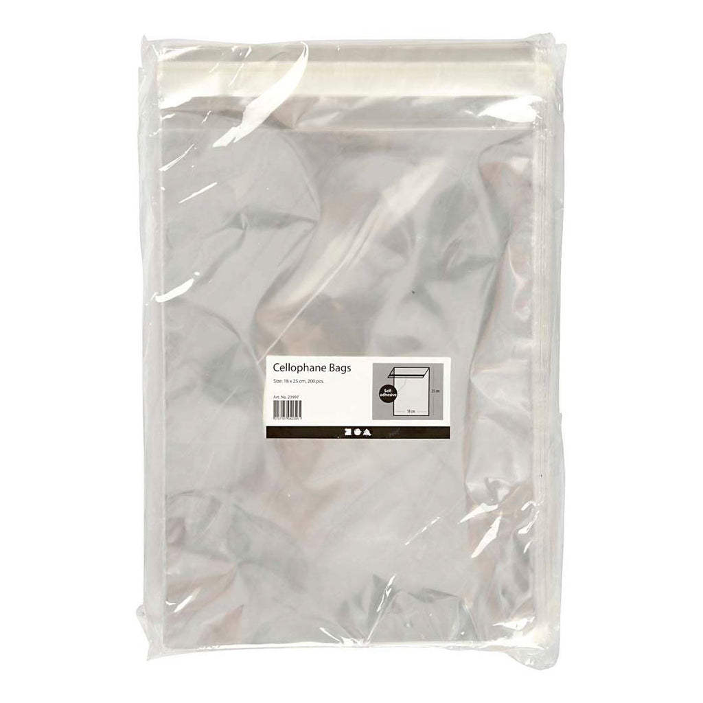 Transparante cellofaan zakjes met zelfklevende flap. Afmetingen betreffen buitenmaat van een dicht zakje