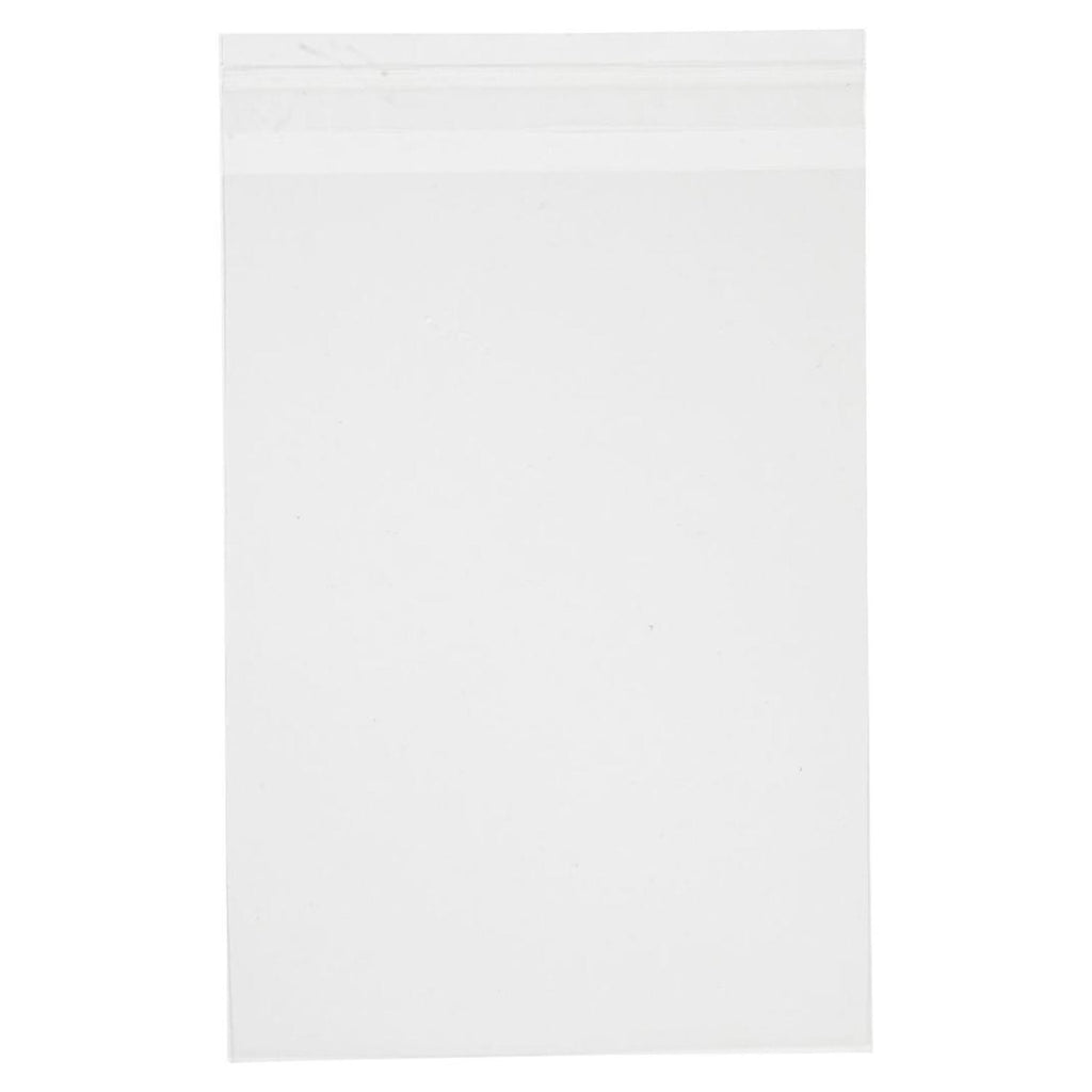 Cellofaan Zakjes, 50 stuks, buitenmaat is 14,5x19 cm. Geschikt voor kaarten met formaat 12,7x17,8 cm, dikte cellofaan is 30 micron.
