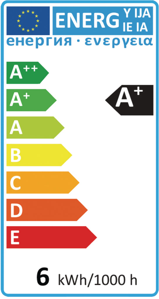 - Energieverbruik per 1000 uur: 6 kWh